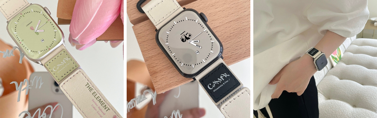 ③「レザータグ」PUレザーアップルウォッチバンド 各 3,880円(税込)