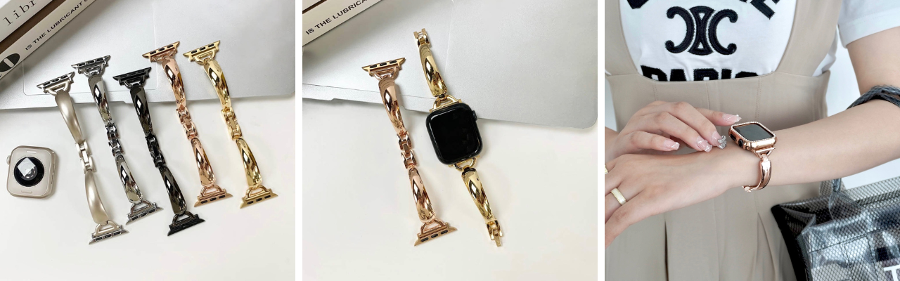 ②「まっすぐひと巻き」メタルアップルウォッチバンド 各 2,980円(税込)