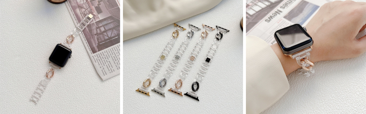 ①「夏の締め色」クリアアップルウォッチバンド 各 2,780円(税込)