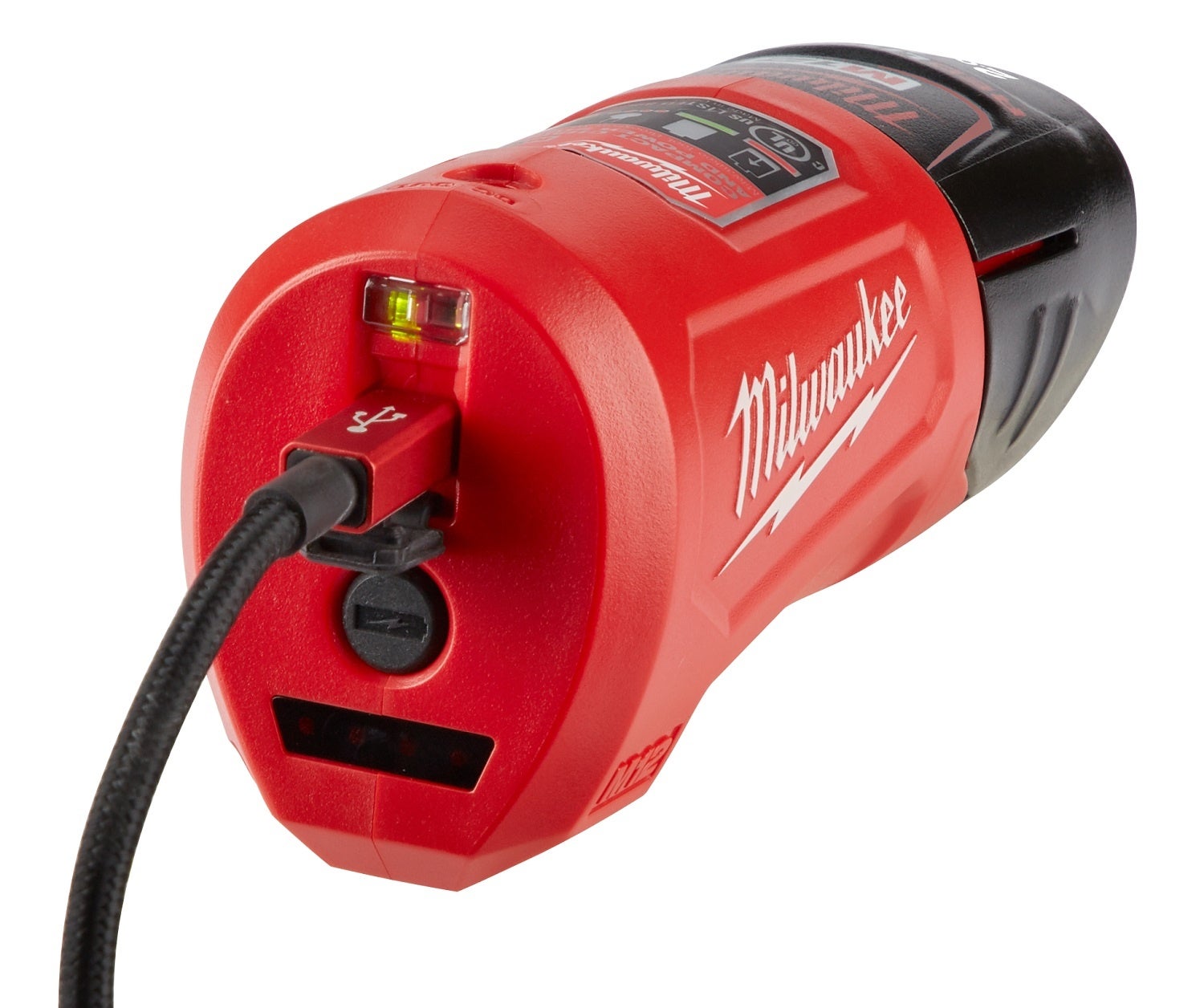 - M12 3.0Ahバッテリー使用で最大12時間の使用が可能 ※M12 トラベルチャージャーが必要
