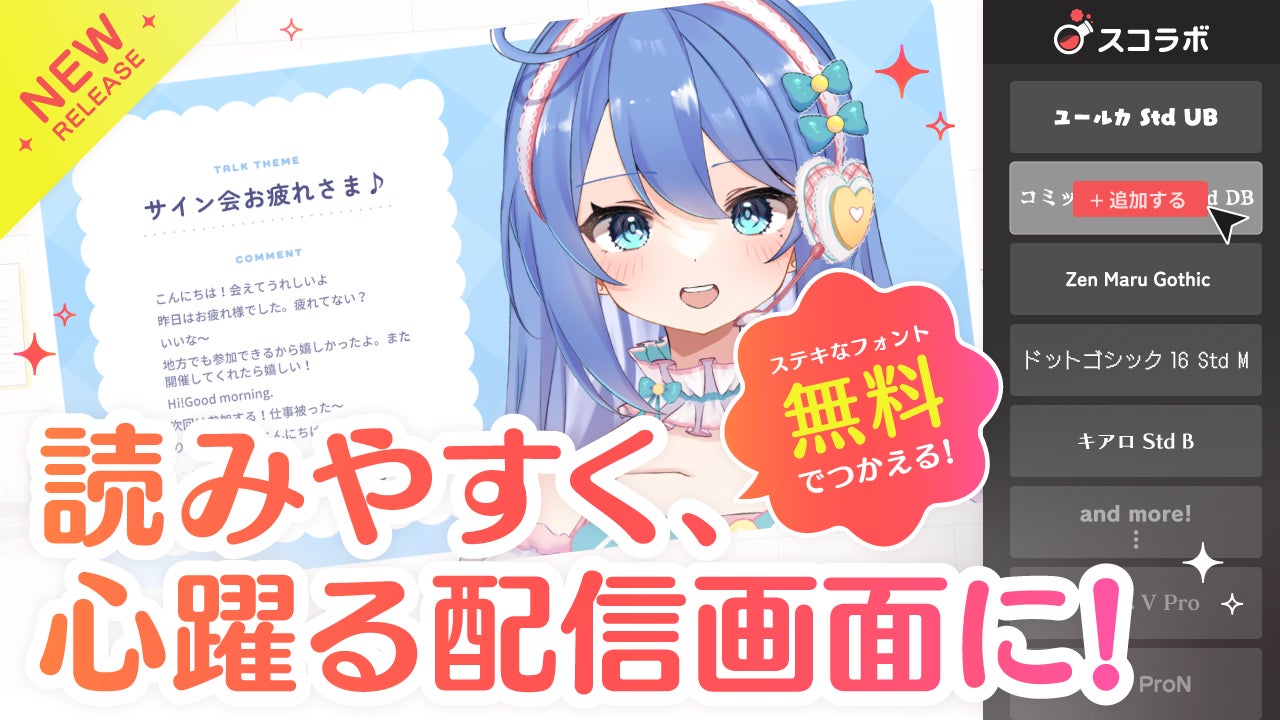 スコラボなら、ライブ配信者の活動に寄り添った厳選フォントを使い放題