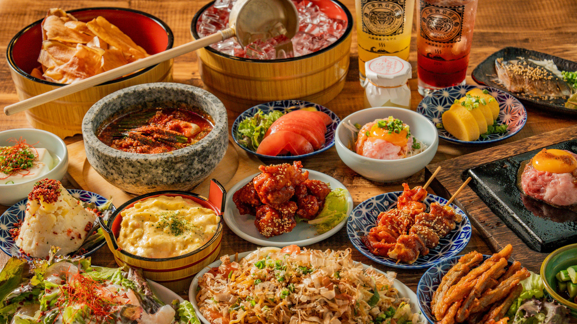 気取らず立ち寄れる雰囲気の中で、お酒と料理を気軽に楽しめるのが大衆酒泉テルマエの魅力。