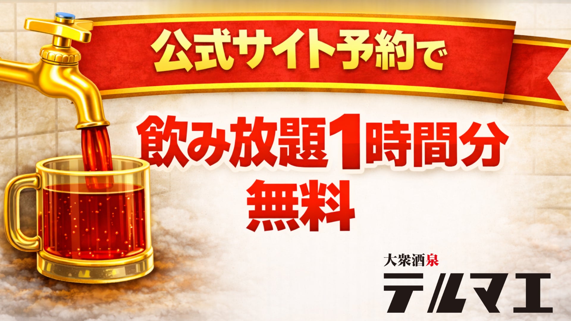 全国11都道府県に19店舗を展開する「ひねり蛇口ハイ 大衆酒泉テルマエ」では、公式サイトからの直接予約限定で、飲み放題がお得になるキャンペーンを開始いたしました。