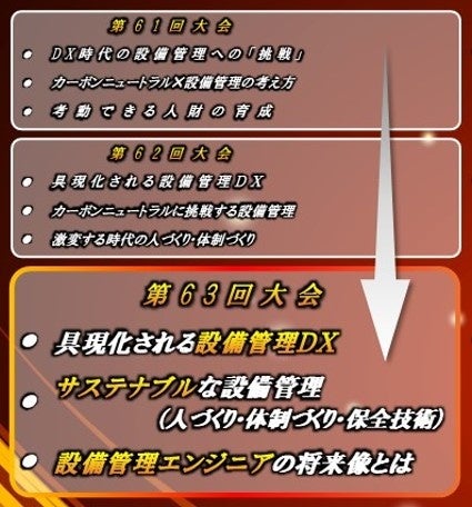 昨年度の大会テーマを継承しつつ、これからの設備管理に挑む、第63回の発表テーマ