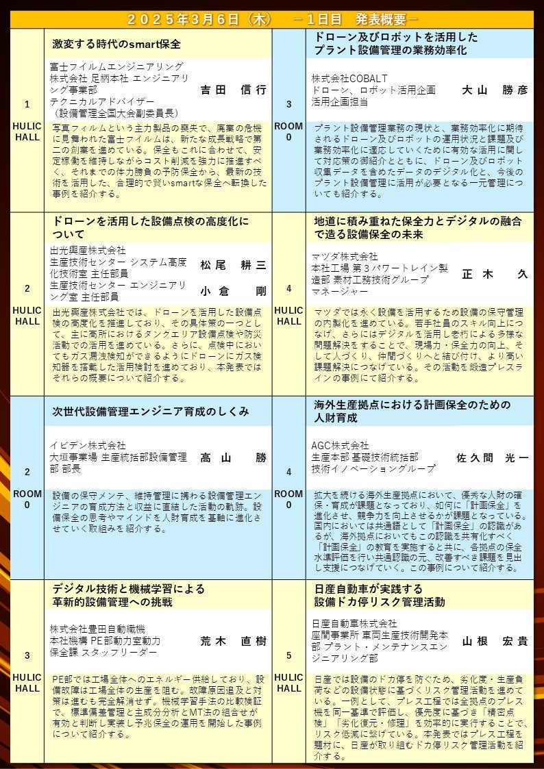 発表だけでなく、ディスカッションによって、設備管理の今(考え方・取り組み・これからの将来像)を考えていただく機会にしていただきたい。