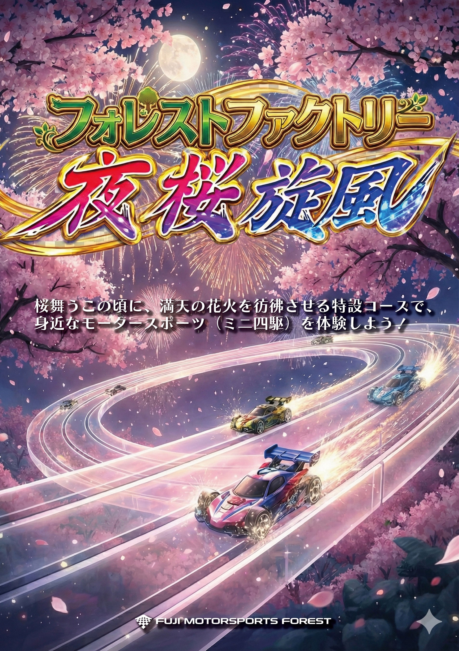 桜舞うこの頃に、満天の花火を彷彿させる特設コースで、身近なモータースポーツ(ミニ四駆)を体験しよう!