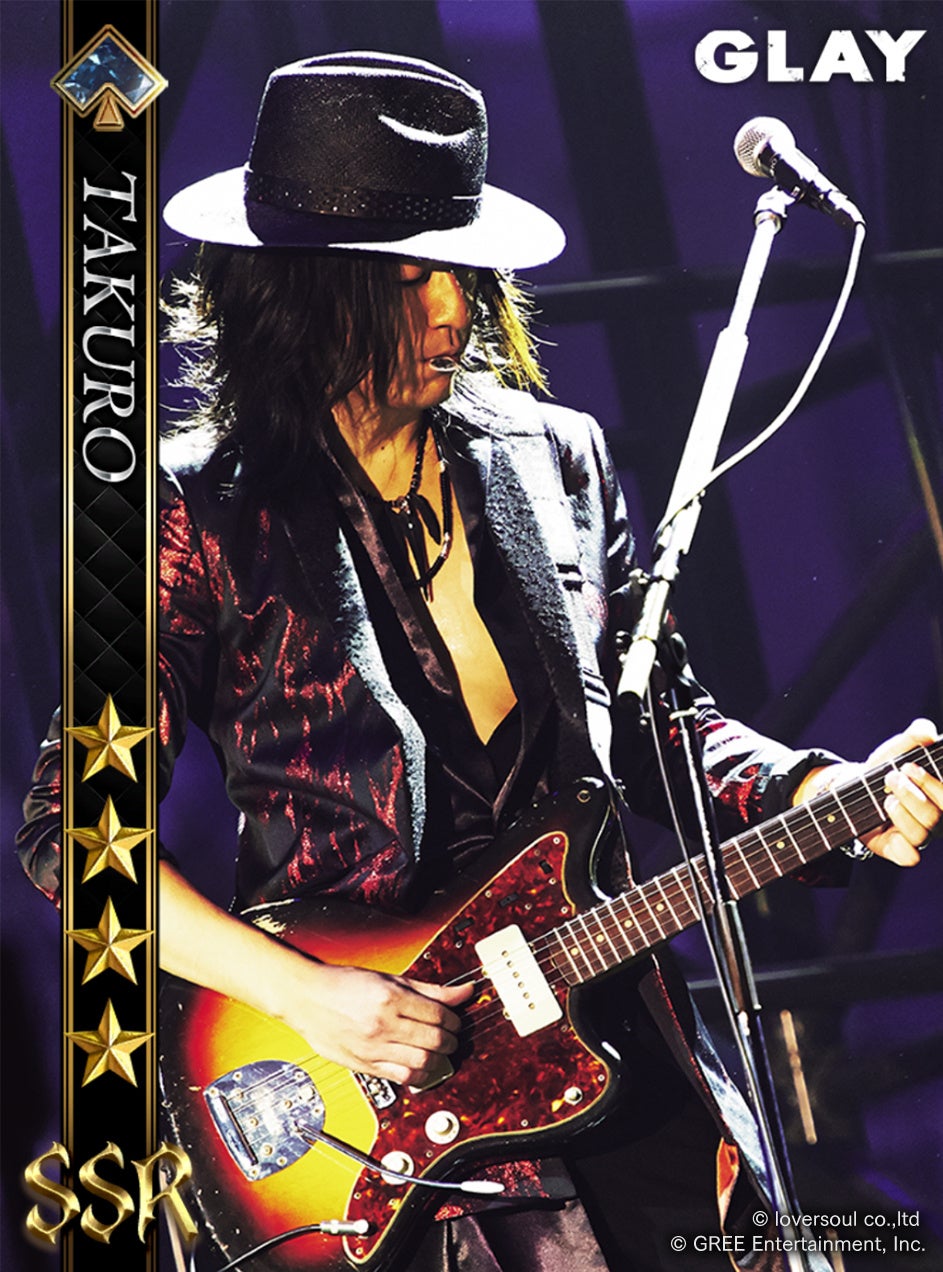 今回の「運命の出会」では、新規カード SSR[ARENA TOUR 2013 "JUSTICE & GUILTY"]TAKURO が登場!期間中、このカードは他のSSRカードより「運命の出会」からの出現率がアップします!