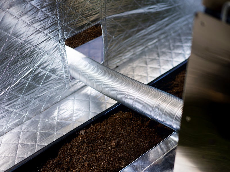 また、外気導入せずにテント内の空気を取り込むと、外気がテント内に入り込む流れが発生して温度低下につながるため、サウナの高温化にも貢献します。