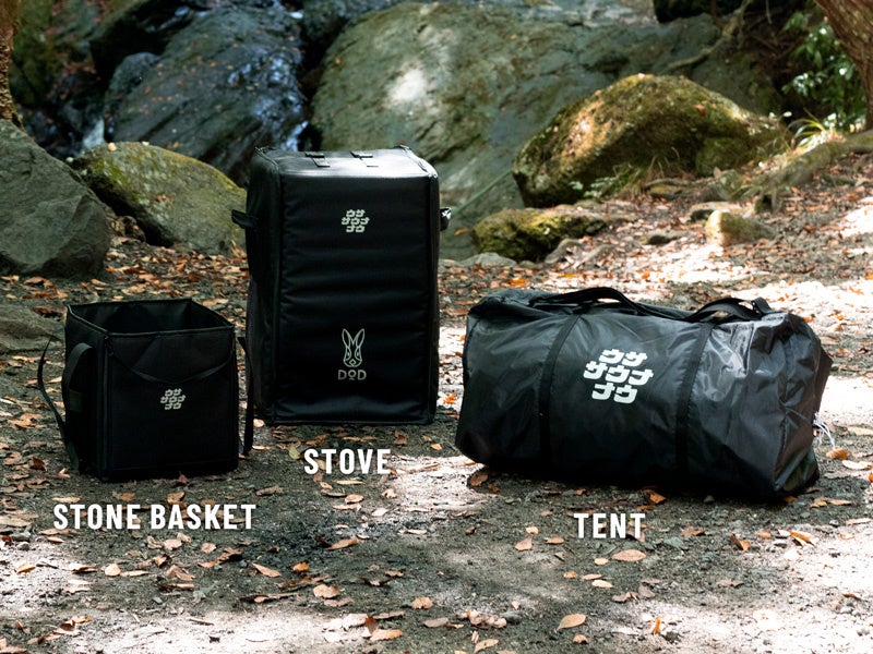シリーズの中でも主役となる「テントサウナセット ウササウナナウ」は、アウトドアサウナ用のテントと薪ストーブ、さらに耐火シートやストーンバスケットなどテントサウナに必要なものが全て揃ったオールインワンセット。