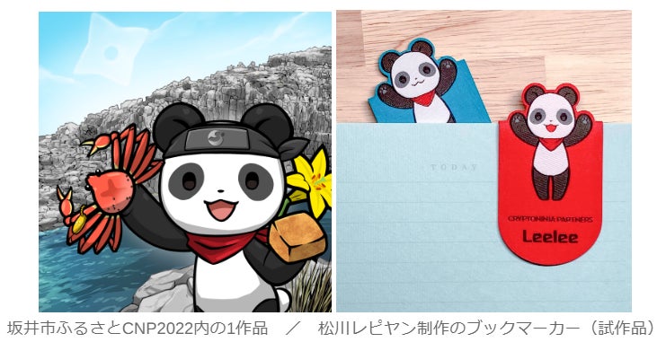 本NFTは、パーツや背景、キャラ等それぞれ異なる組み合わせの合計222種類となり、「坂井市ふるさとCNP2022」では、坂井市の特産品である越前がに、油揚げなど名所である東尋坊、丸岡城などをモチーフにして描いた背景が組み合わされています。メインキャラクターにはCNPの人気キャラクターの「リーリー」を採用し、坂井市を訪れることでNFTのレベルを上げる仕掛けも実装予定です。返礼品NFT保有者特典には、松川レピヤンがふるさとCNP限定のブックマーカーを作成し、ふるさとCNP222体の保有者全員へ提供します。また、NinjaDAOのCNP保有者のみ参加可能なdiscordチャンネルの1か月体験する権利が付与されます。