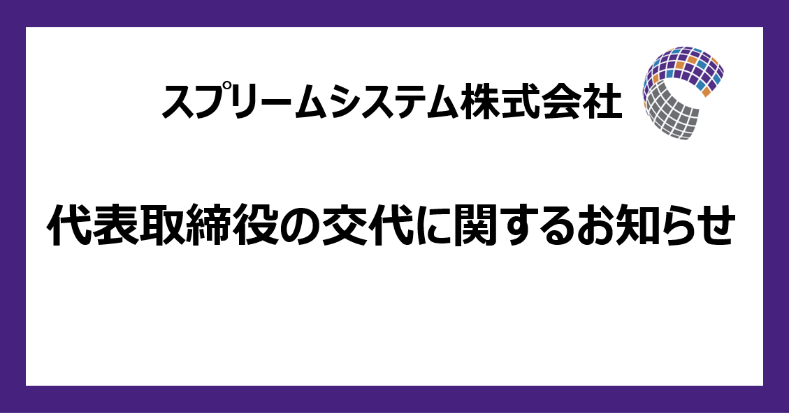 スプリームシステム株式会社、代表取締役の交代に関するお知らせ