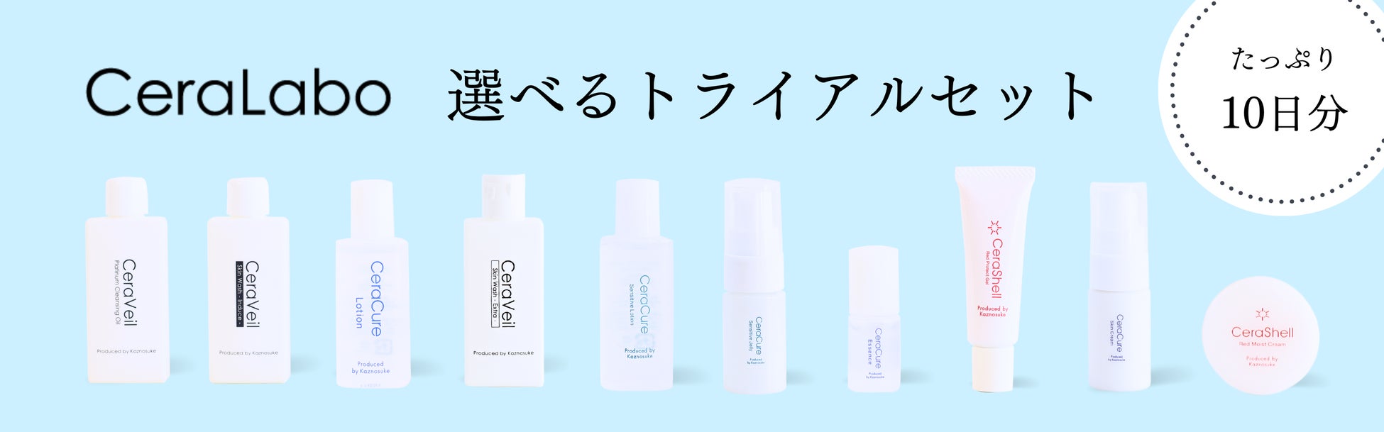 YouTubeやブログで人気の総フォロワー数50万人超 美容化学者“かずのすけ”開発スキンケアブランド【CeraLabo】より、WEB限定で『選べるトライアルセット』を発売します。
