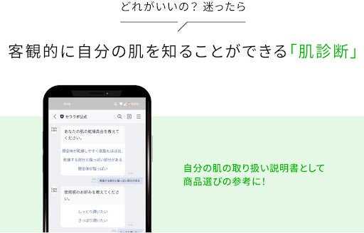 「セララボの商品を使ってみたいけれど、どのアイテムが合ってるのかな?」と悩まれる方のために、LINEで簡単にできる肌診断をご用意しました。