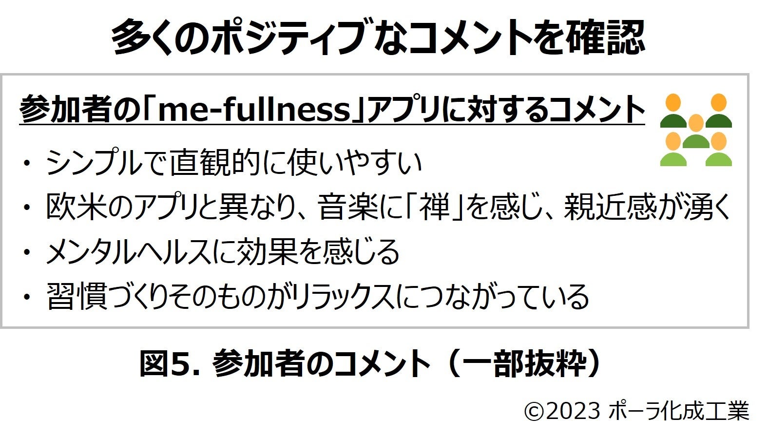 デプスインタビューでは、アプリに対して、使いやすさ、欧米アプリとの違い、効果実感などさまざまな観点からポジティブなコメントをいただきました(図5)。