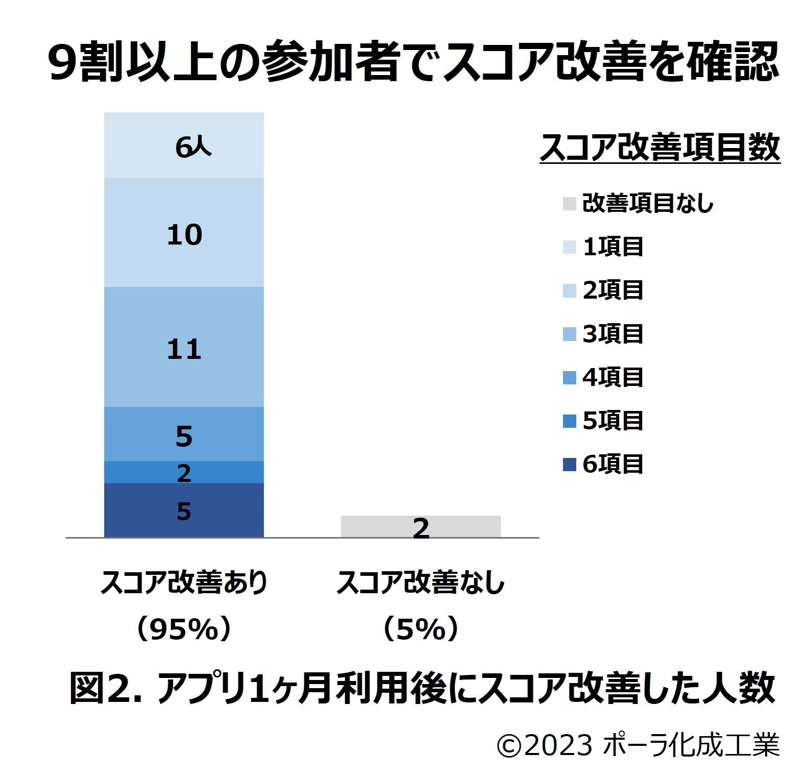 各評価項目において、一定の割合でスコアの改善が確認されました。