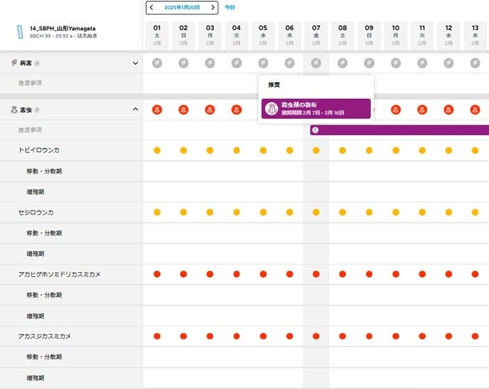 水稲栽培の3大リスクである病害・害虫・雑草に対応した防除タイミングアラートを強化