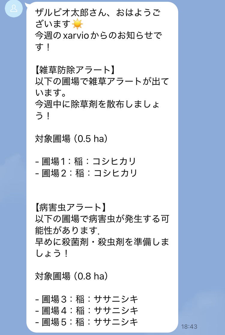 防除や追肥(可変施肥)、収穫適期など、重要な情報を見落とさないためのLINE通知を開始