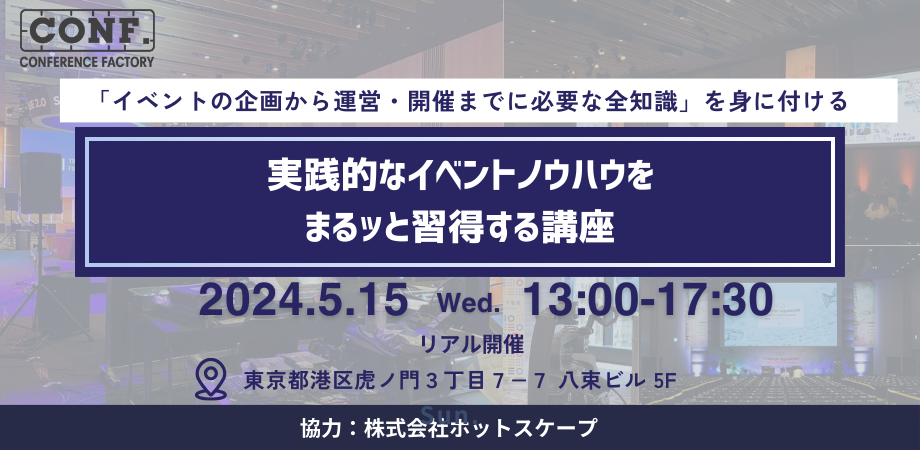 株式会社カンファレンスファクトリー主催のイベント実践講座に講師として登壇します。