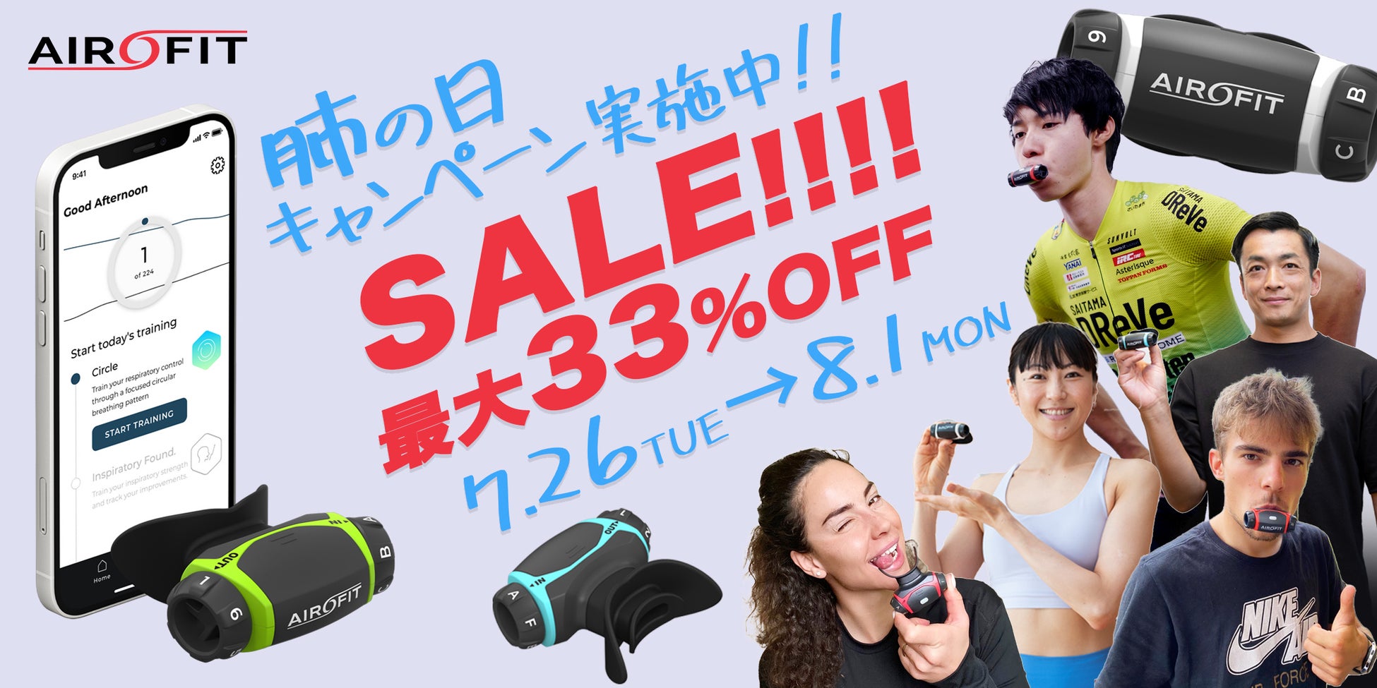 呼吸筋トレーニングデバイス「エアロフィット」を扱うアオイロショップでは、8月1日(肺の日)にあわせた最大33%オフのお得なキャンペーンを実施いたします。