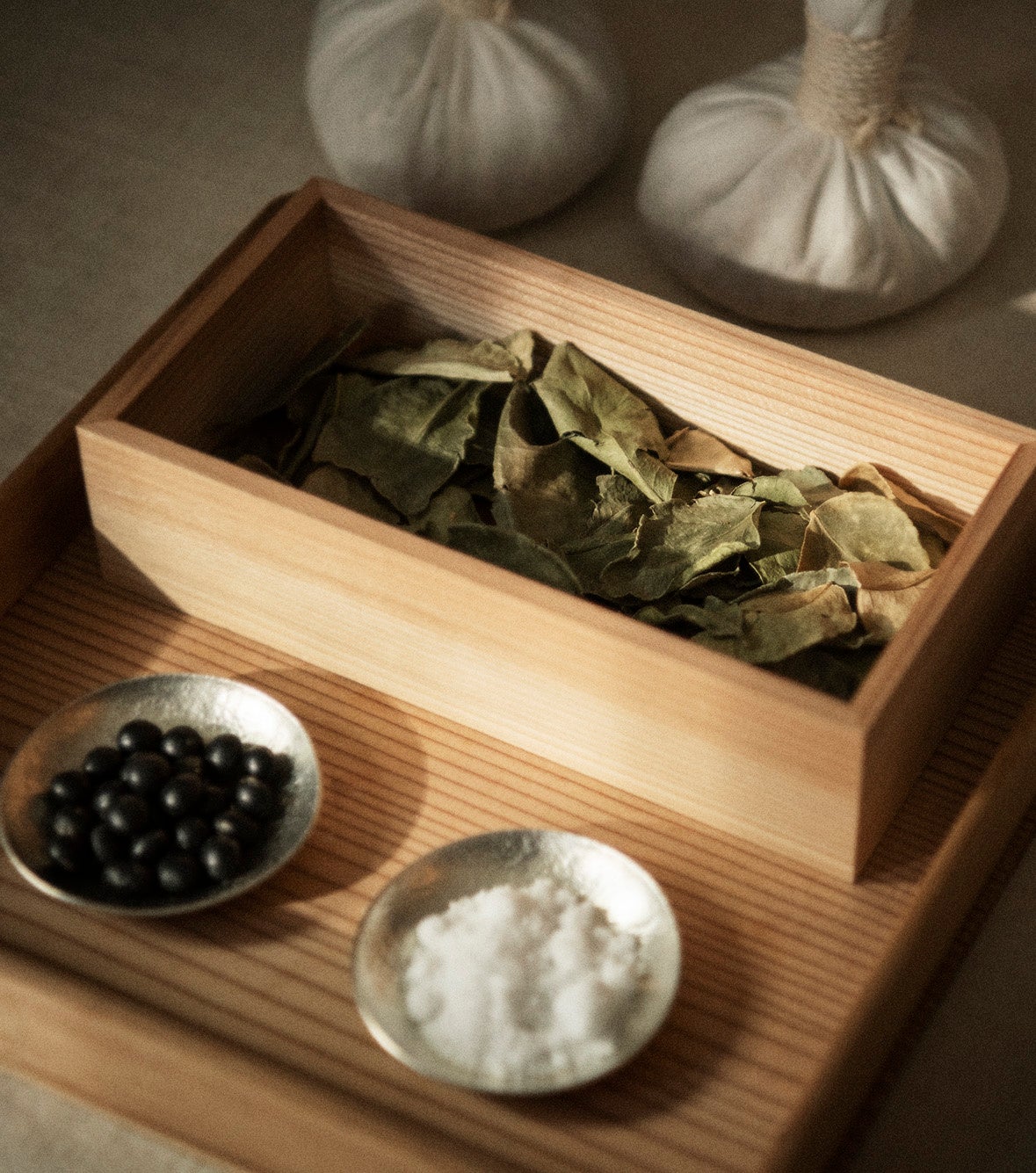 深い浄化作用によって感覚を豊かにするこの儀式は、古代のシャーマン達が神と地上を繋ぐためおこなった儀式のように煙療法や薬草、スパイスを使用した伝統的なセラピーによって自然と繋がり、精神と肉体を浄化 ( デトックス ) することで心と肌に輝きを取り戻します。トリートメントの始まりは、フレッシュハーブを使用したハーバルスチームで呼吸を深め、心身の緊張を和らげます。座った状態で首、肩、頭に集中してアプローチをするシローアビヤンガは、慢性的な頭痛や肩こり、睡眠障害に役立つことでしょう。つづくフェイシャルのプロセスは、不純物を取り除き、汚染によるダメージを軽減するように設計されたスキンデトックスセラピーによって、クリーンで滑らかな肌へと整え、肌の色調を均一にします。 強力な栄養素とビタミンが豊富に含まれた、ブライトニング効果の高いセラムとセラピストの細やかなタッチによって、深いレベルで肌の調子を整え、清らかで澄んだ心と肌へと目覚めさせます。