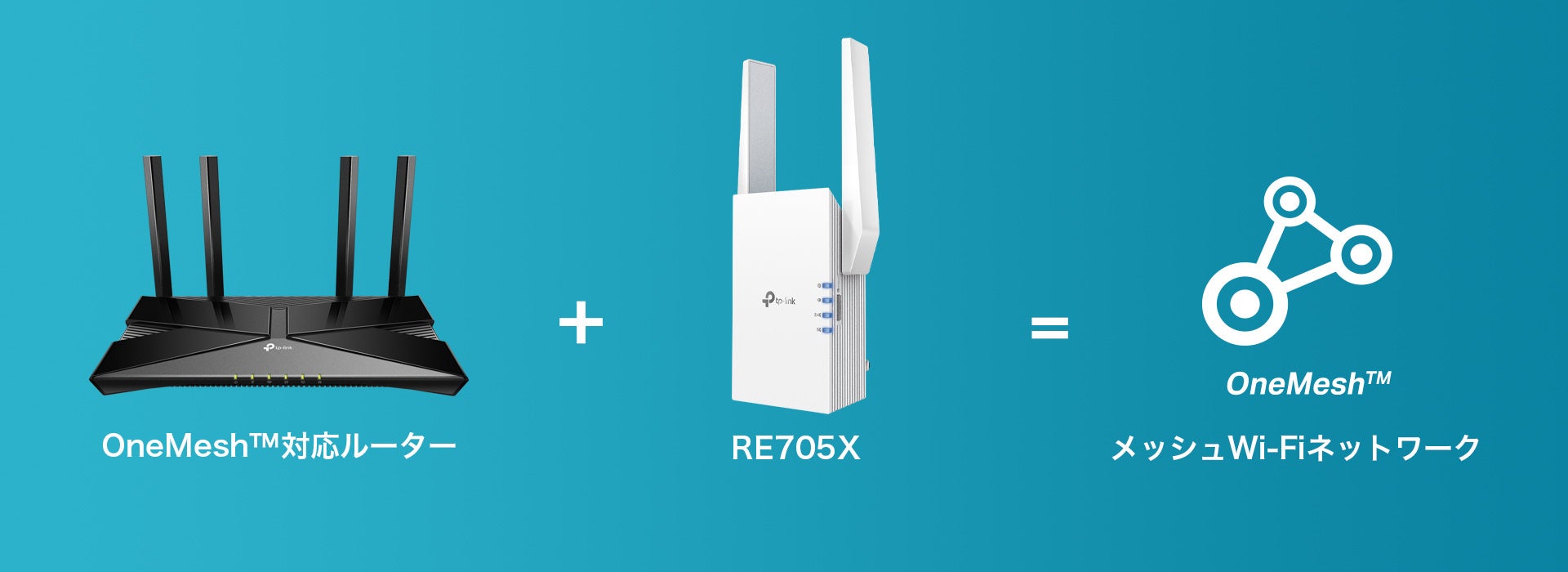 「RE705X」はOneMesh™に対応しているため、 OneMesh™ルーターと組み合わせてメッシュWi-Fiネットワークの構築が可能です。