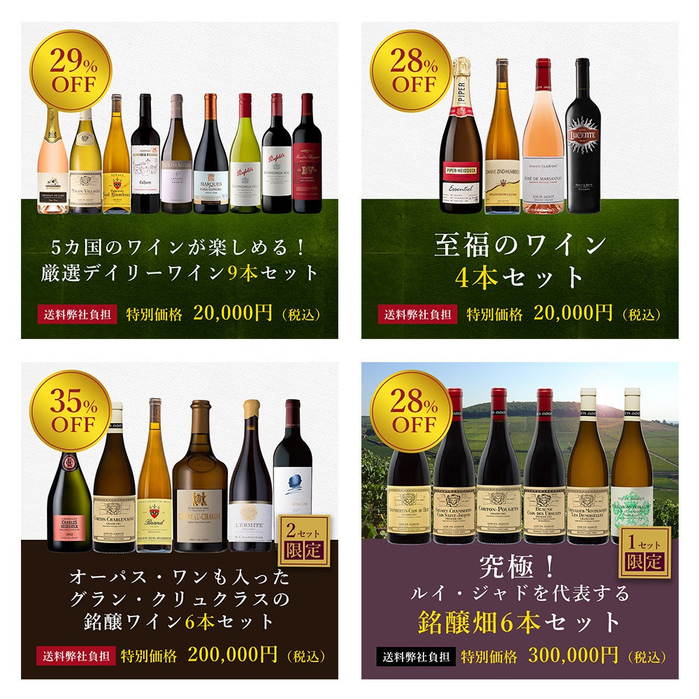 2周年にちなみ、2万円、20万円のスペシャルワインセットを数種類ずつご用意。ご自宅で楽しむのにおすすめのワインや、なかなか手に入らない希少品、オールド・ヴィンテージなどを厳選しました。また、極希少品を取り揃えたブルゴーニュのワインセットも同時発売。どれも数量限定でのご案内です。