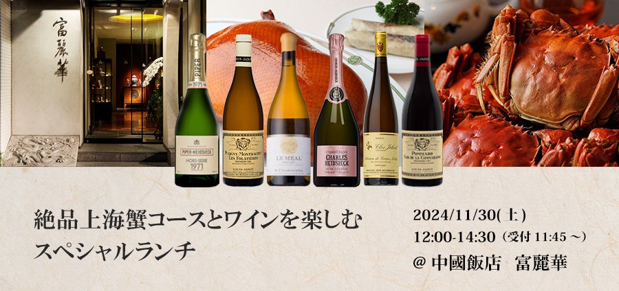 ミシュランの1つ星を17年獲得し続ける、中國飯店 富麗華の「上海蟹コース」のお料理と、Your Cellarが選んだワインとのペアリングをお楽しみいただくスペシャルランチを開催します。限定11席でのご案内のため、満席の際はご容赦ください。