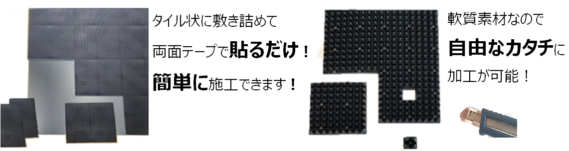 ・ 材料と形状の組み合わせにより垂直・斜め双方向にて高い吸収性能を発揮