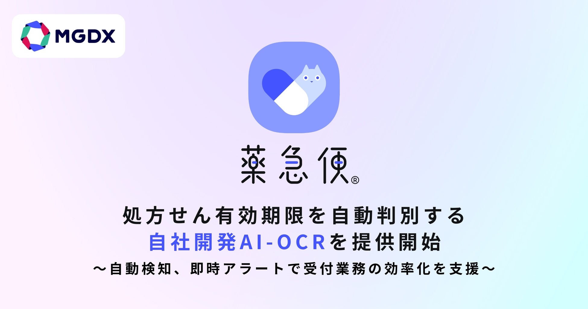 株式会社MG-DX (本社:東京都渋谷区、代表取締役:堂前 紀郎、以下「当社」)は、オンライン調剤サービス「薬急便(やっきゅうびん)」において、自社開発のAI-OCR技術を活用し、処方せんの有効期限を自動で判別する新機能の提供を開始したことをお知らせします。
