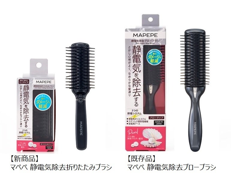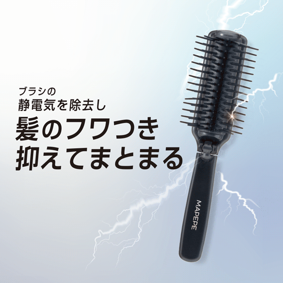 【マペペ】ブラシの静電気を除去し、髪のフワつき抑えてまとまる。外出時にも便利な折りたたみ式のヘアブラシを新発売。