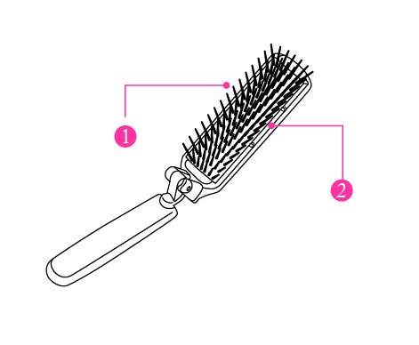 ヘアブラシのピンの素材に導電性ポリエステルを使用しています。
