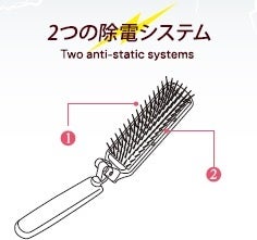 ブラシの静電気を除去し、ブラッシングによる髪のフワつきやパチパチを抑えます。