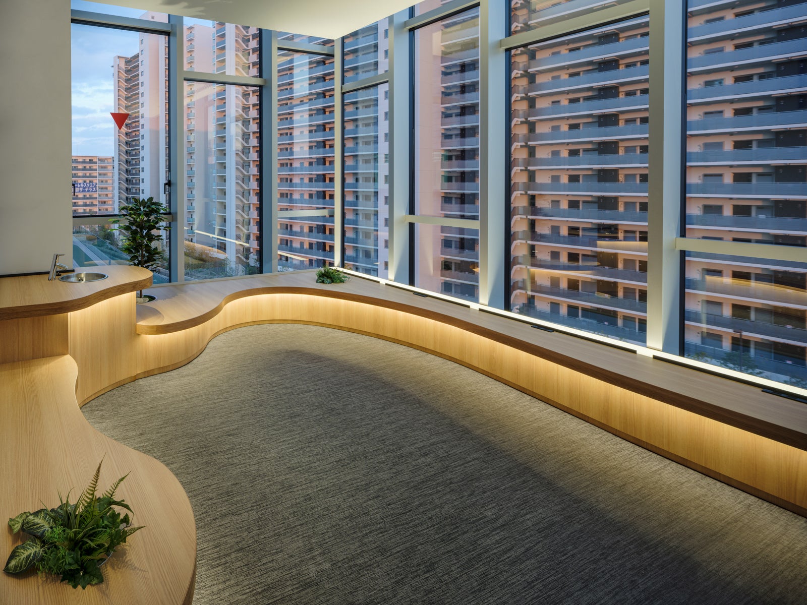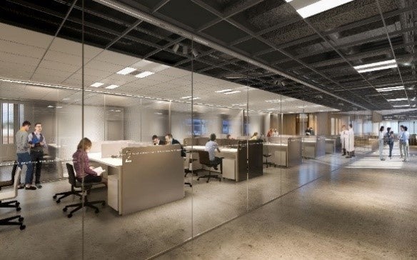専用区画(貸室)を入居者に賃貸する形態とし、本施設の3階の一部と5階~7階に配置しています。貸室(一部の貸室は除く)では、実験可能なウエットラボ仕様としており、実験に必要な給排水、ドラフトチャンバーなどの大型設備の設置も可能なスペックも確保しています。貸室の面積は、最小約25坪から大小さまざまな規模に対応できるようになっております。なお、実験可能なレベルはBSL2※4までとしております。