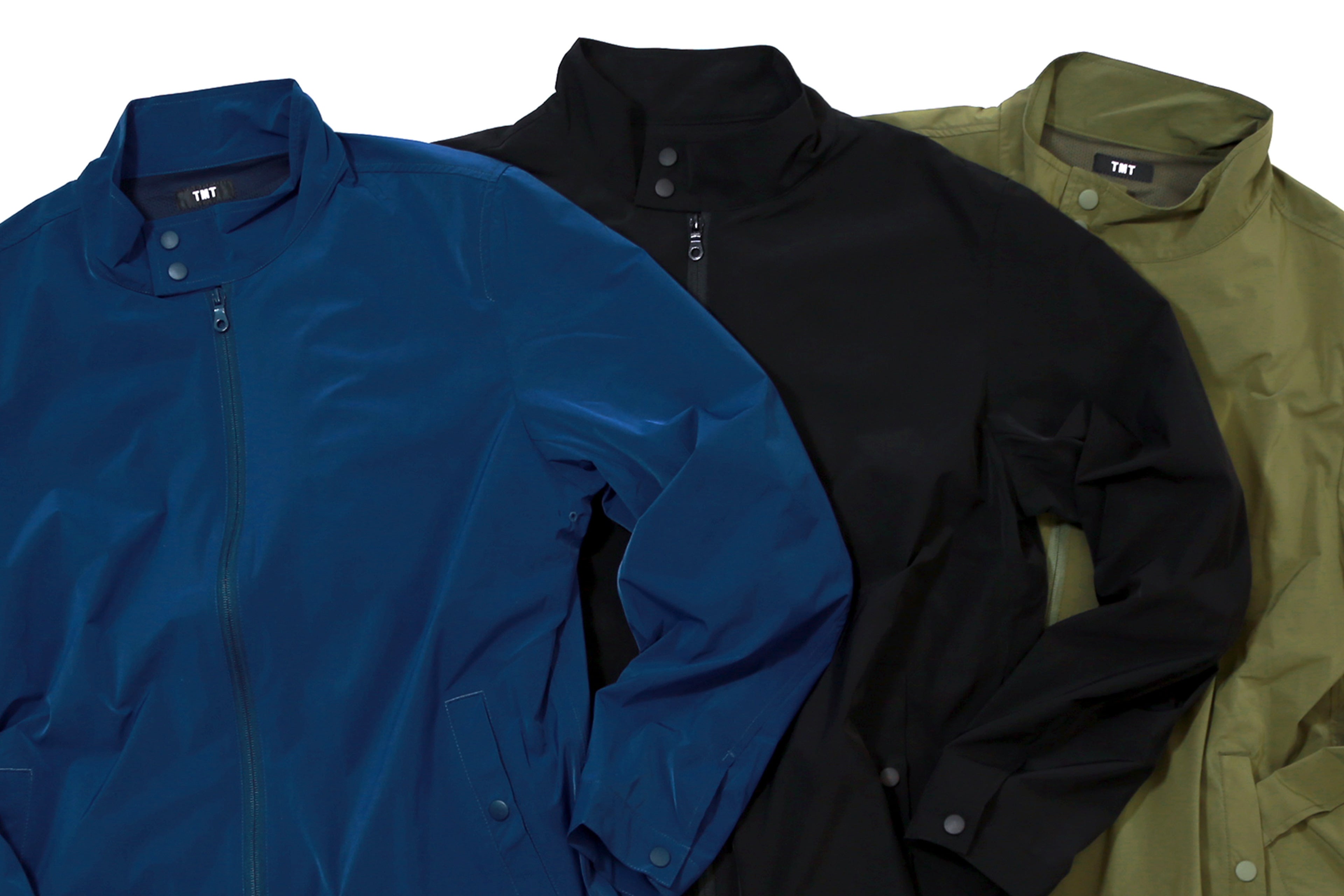軽く、コンパクトで撥水性がある機能ブルゾン。 シンプルでコーディネートにも合わせやすいデザインで、 後の襟もとに同系色のシリコンプリントでTMTロゴを施しています。 ショートパンツ(TSP-S23SP01)と同素材のセットアップ展開です。