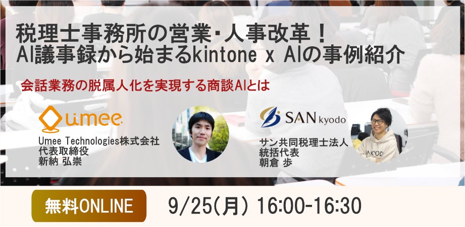 テーマ 税理士事務所の営業・人事改革!~AI議事録から始まるkintone x AIの事例紹介~