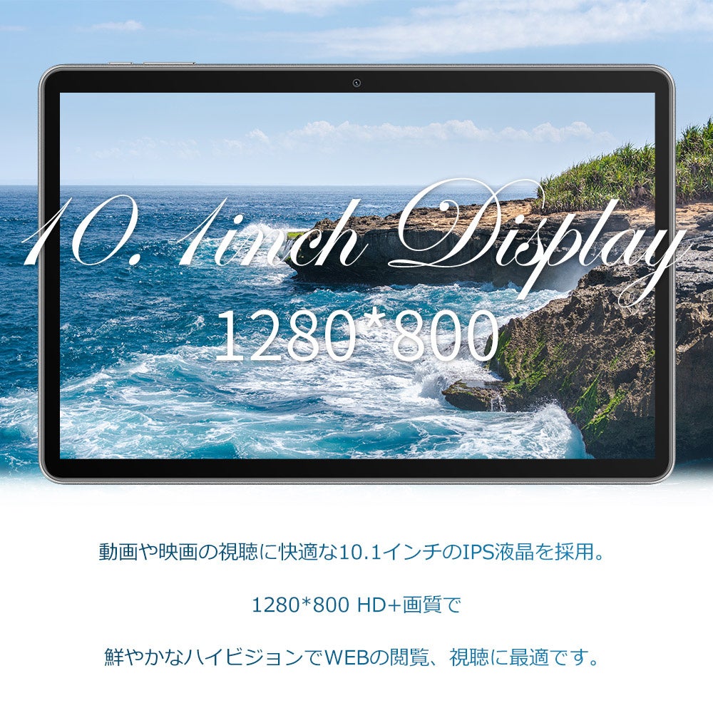 10.1 インチ、アスペクト比16:10、1280×800(HD+)解像度に対応したIPSパネルのディスプレイを搭載。鮮明でカラフルな映像を楽しむことが出来ます。スピーカーは2基内蔵(デュアルスピーカー)。メディア視聴目的でタブレットを探している方でも満足できる映像視聴体験を提供します。