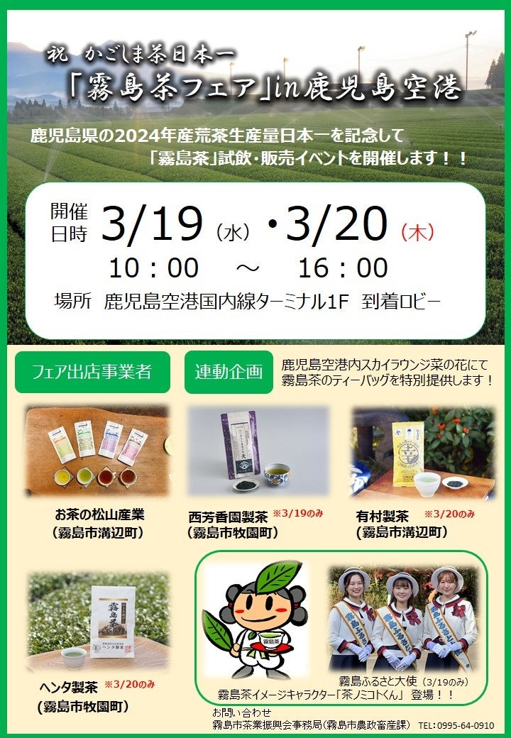 【3月19日(水)・20日(木)開催】祝かごしま茶日本一「霧島茶フェア」in鹿児島空港を開催します!