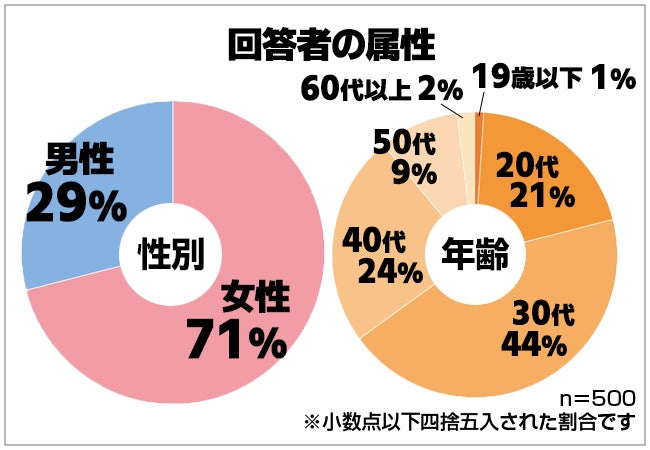 ご協力いただいたのは、500人、19歳以下から60代以上の男女です。割合は以下のとおり。