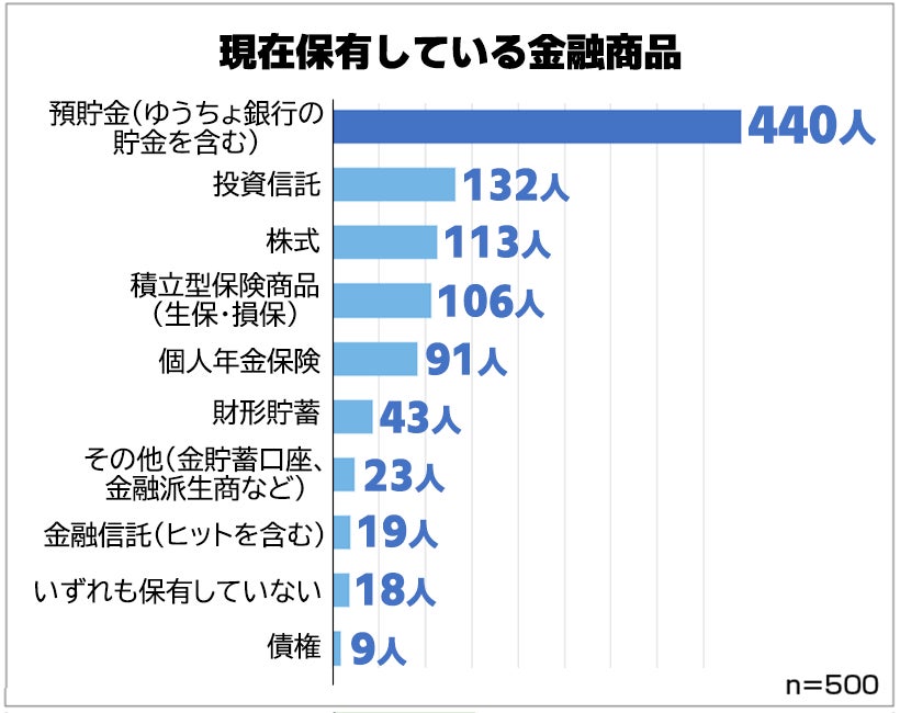 預貯金と比べると少ないものの、株式や投資信託といった答えも目立ちました。