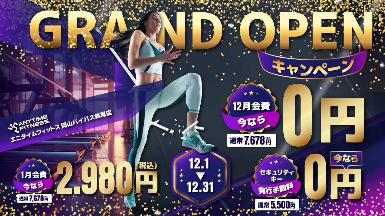 【24時間ジム】12/1(日)、岡山市南区古新田に「エニタイムフィットネス岡山バイパス妹尾店」がグランドオープン!<グランドオープンキャンペーン実施中>