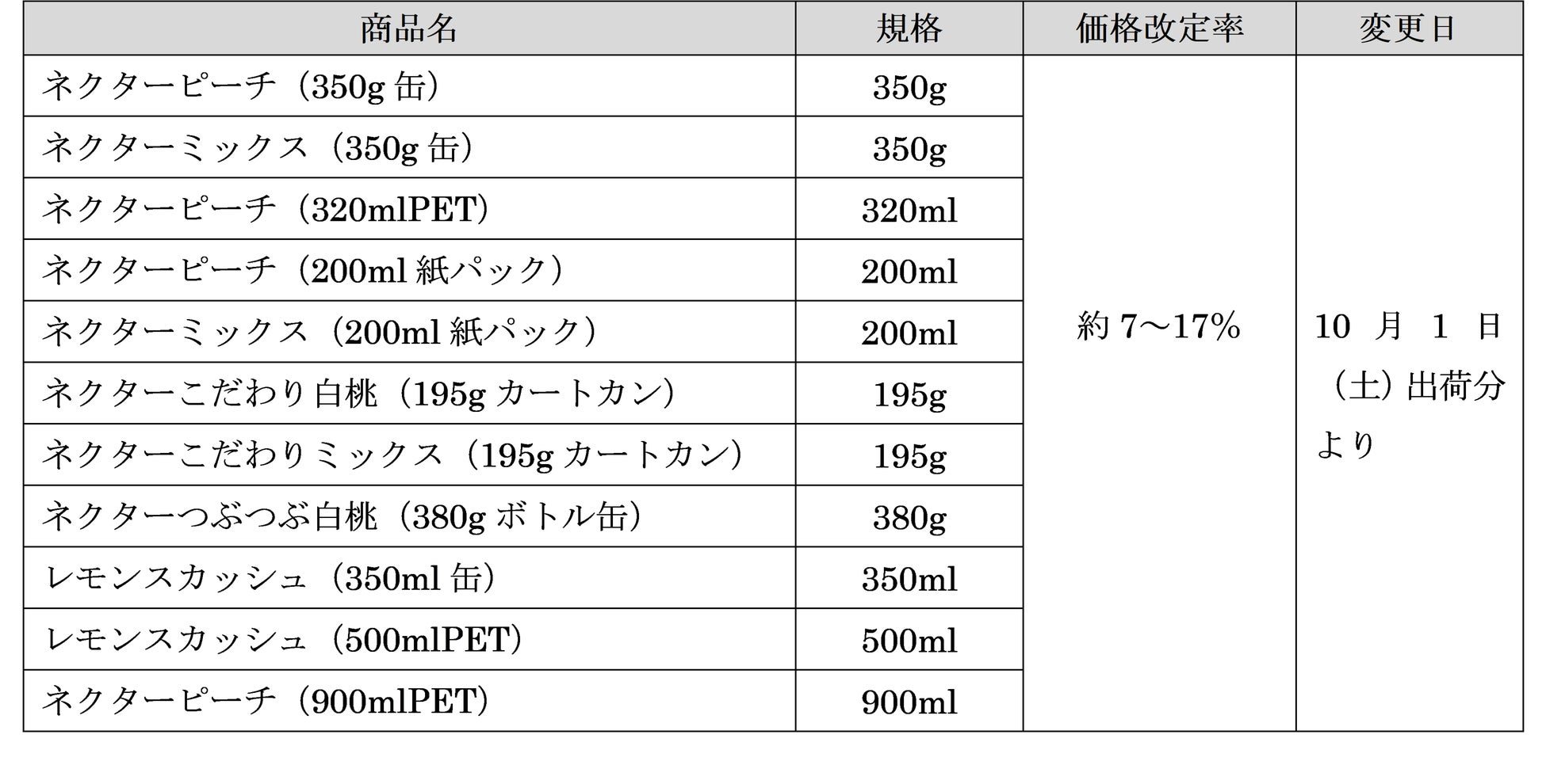 株式会社不二家(本社:東京都文京区、社長:河村 宣行)は、飲料の一部商品についてメーカー希望小売価格(および出荷価格)を2022年10月1日(土)出荷分より改定いたします。