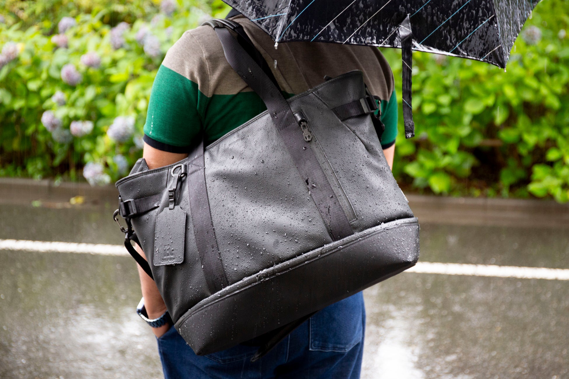 防水本革なので天候に左右されずに荷物の持ち運びが可能