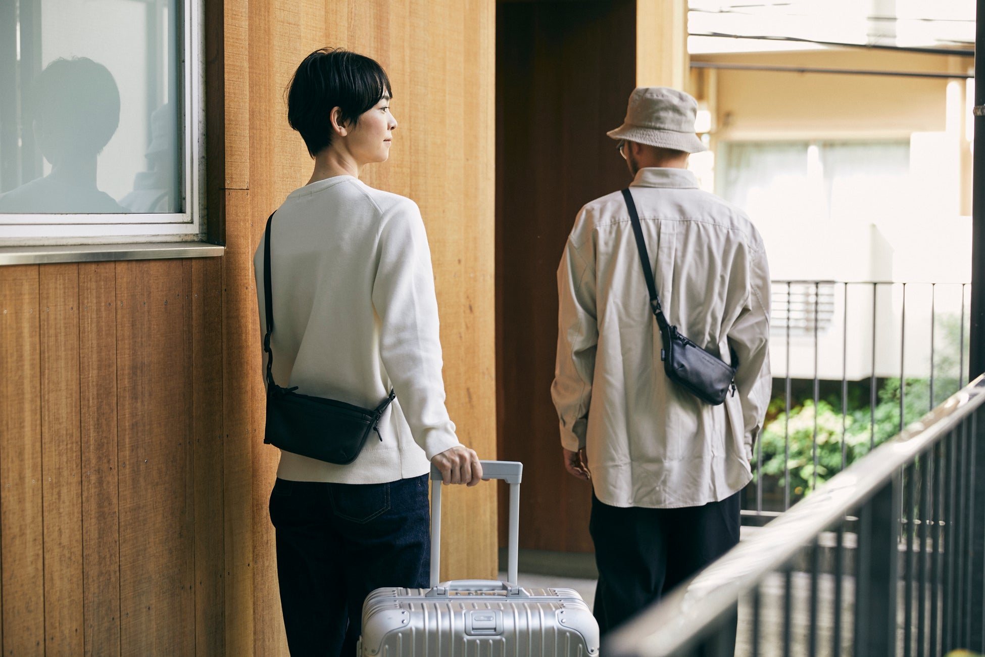旅行中の突然の雨や水辺でのアクティビティにも大切な荷物が濡れる心配がありません。濡れた後は乾いたタオルやハンカチでサッとふけば元通り、水シミの跡も残りません。