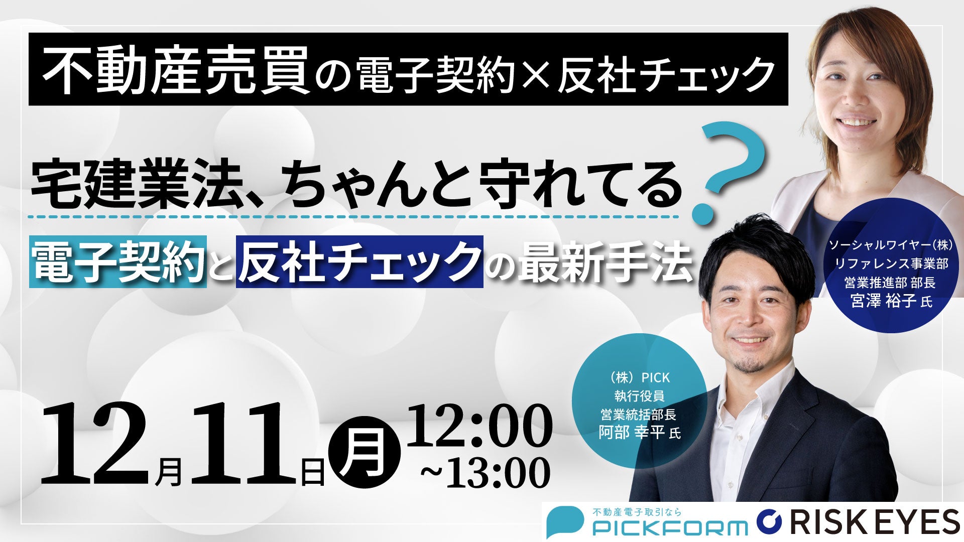 不動産/建築向け電子取引サービス「PICKFORM」無料オンラインセミナーを反社チェックツール「RISK EYES」と共催決定