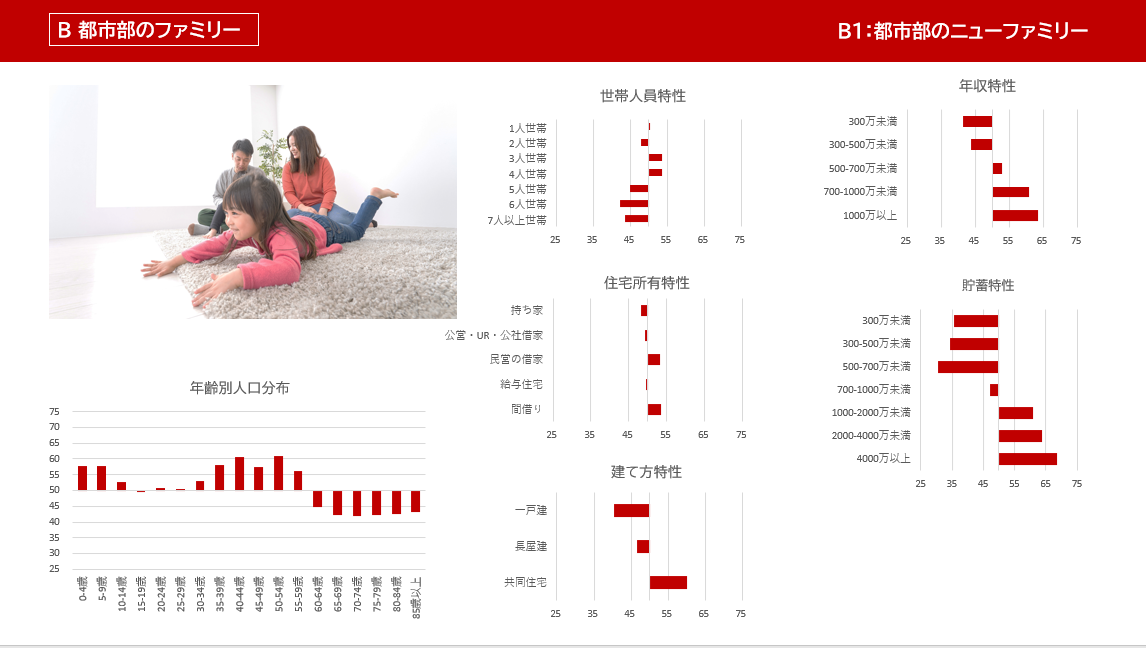 〇 セグメント例:B都市部のファミリー|B1都市部のニューファミリー