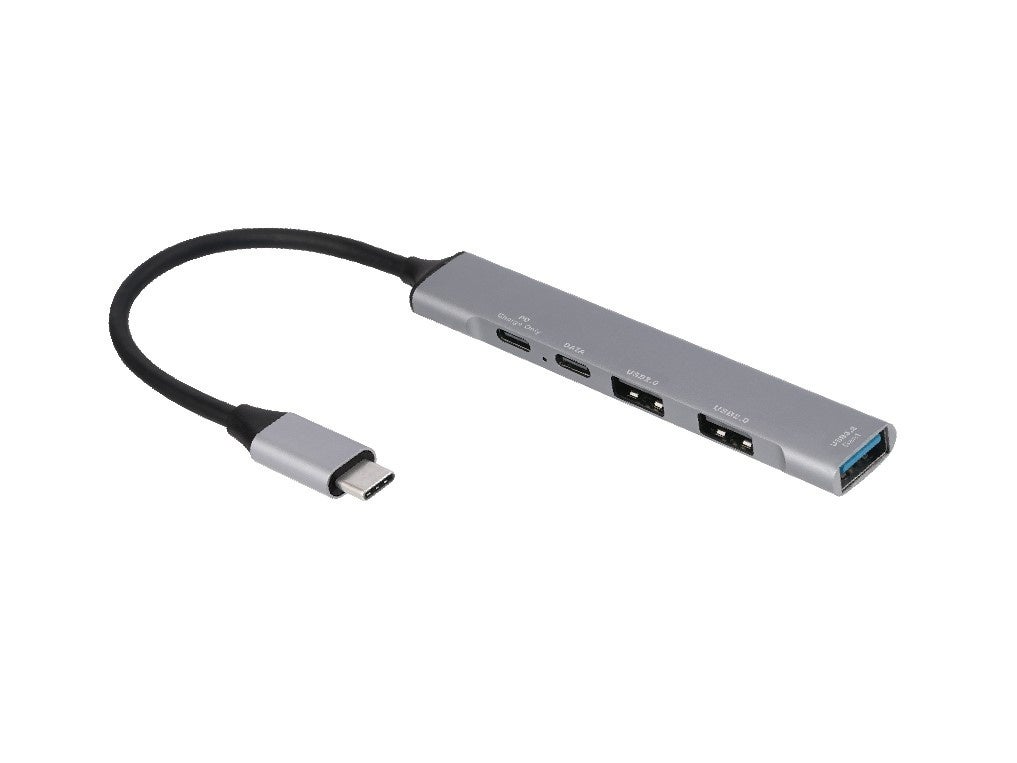 「PD対応 USB3.2 Gen1+2.0 4ポートアルミハブ」は、Type-CとType-A の2種類のポートを計5個搭載したスリム設計のアルミハブです。