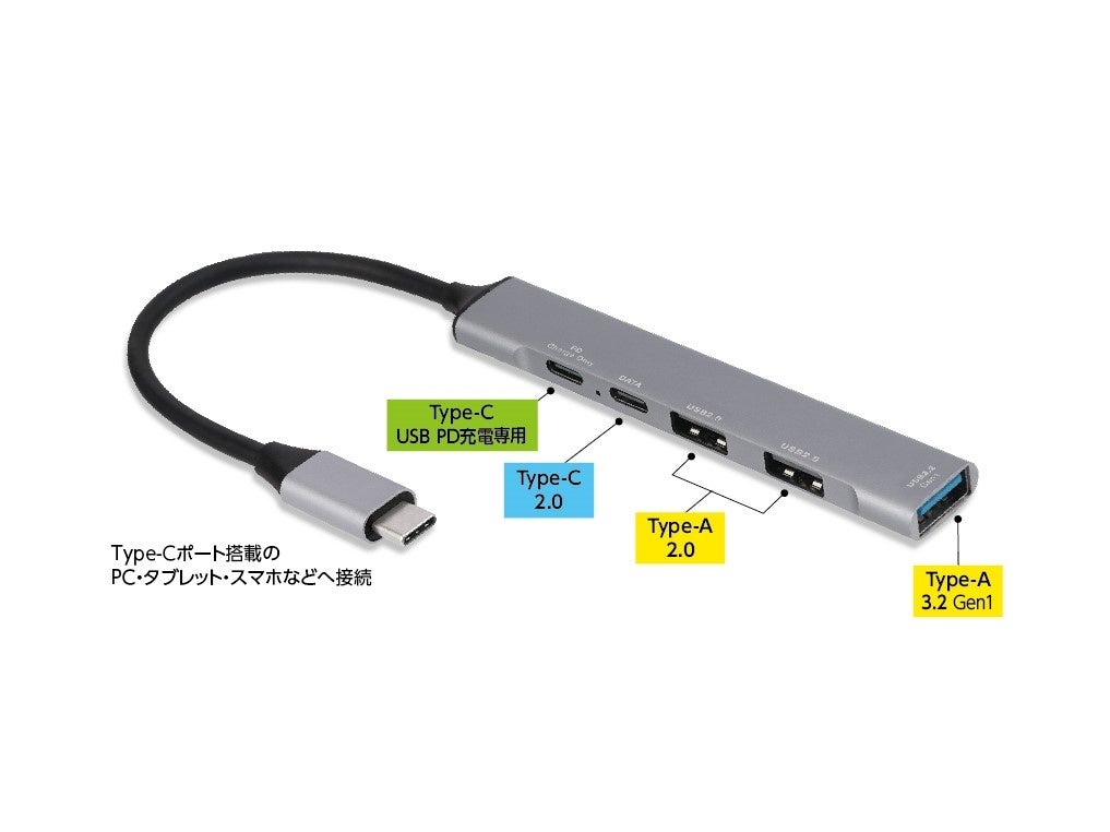 USB PD対応の充電専用Type-Cポート付き!スリム設計のアルミボディハブ「PD対応 USB3.2 Gen1+2.0 4ポートアルミハブ」を発売
