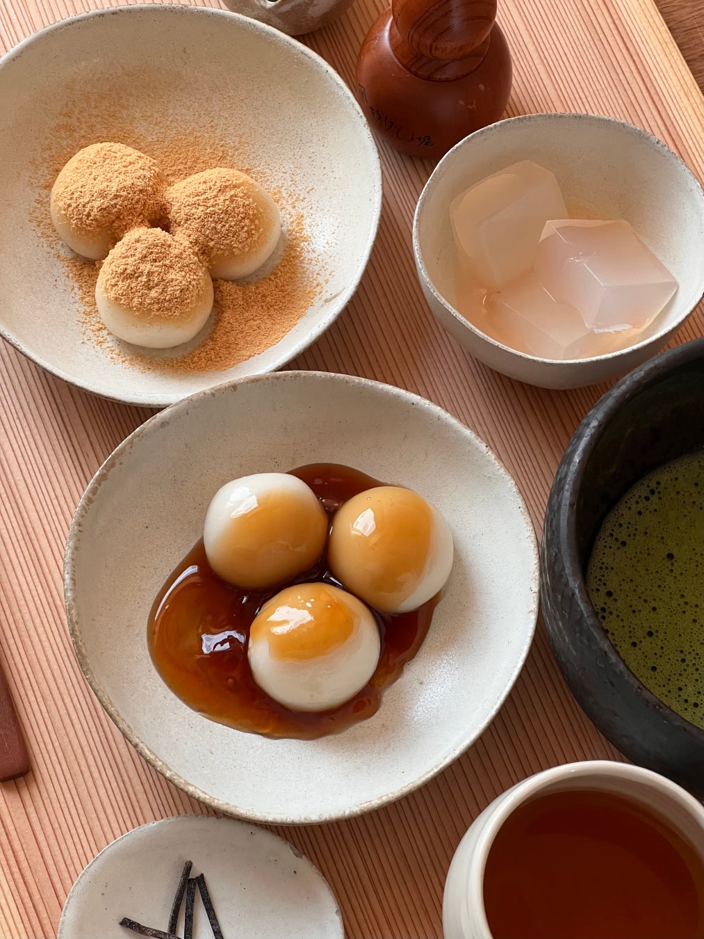 みつ白玉3玉(きなこ、みたらし、抹茶、ずんだ、あんこ、抹茶あん)