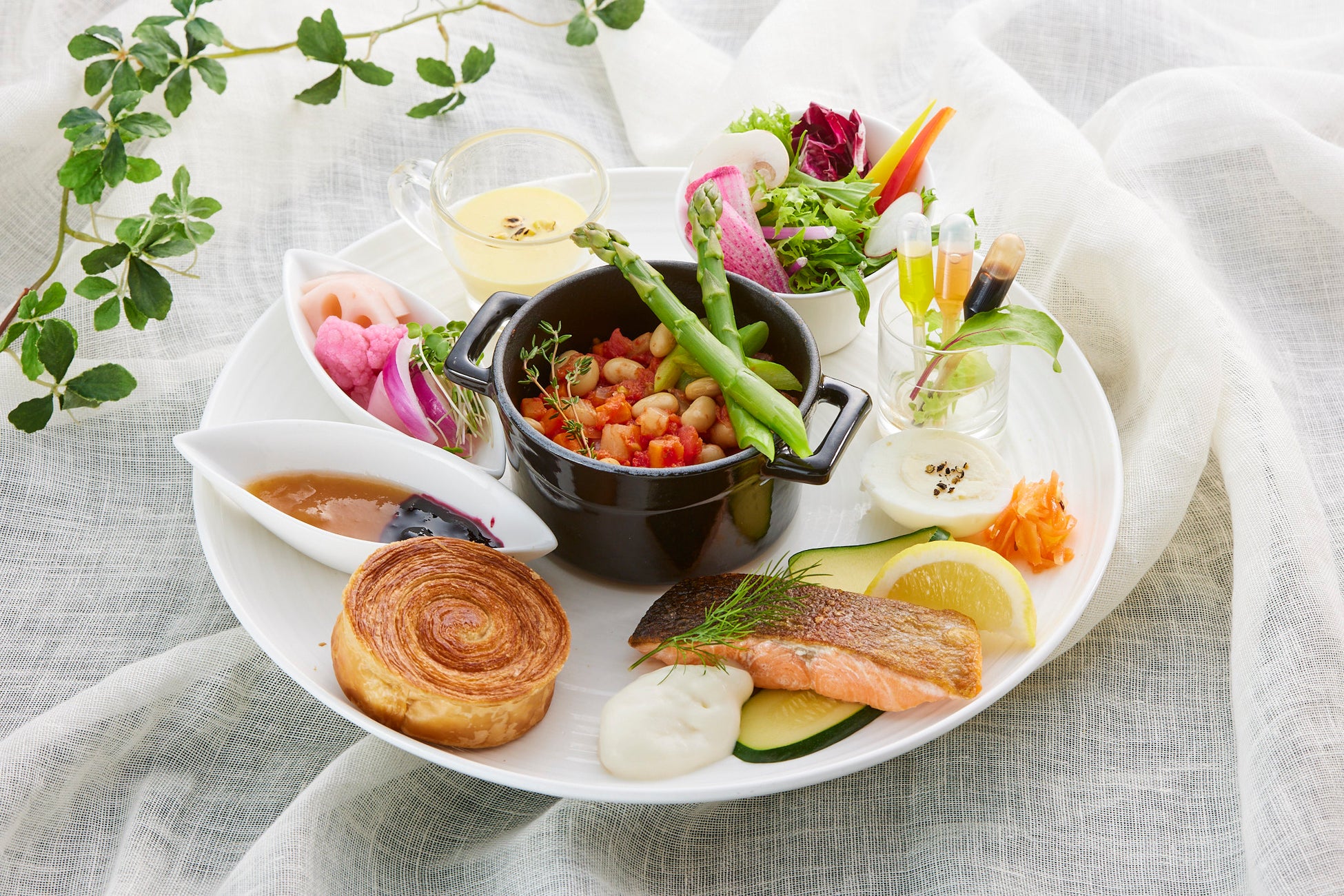 開放感あふれる1階〈グラスシーズンズ〉の料理長が、この日の為に考案したメニューは、健康や美肌につながるという腸内環境の改善をテーマとし、アンチエイジング・デトックス等、様々な効果が見込まれる発酵食品をメインに取り入れた、美と健康に関連する栄養素がたっぷり含まれたランチです。