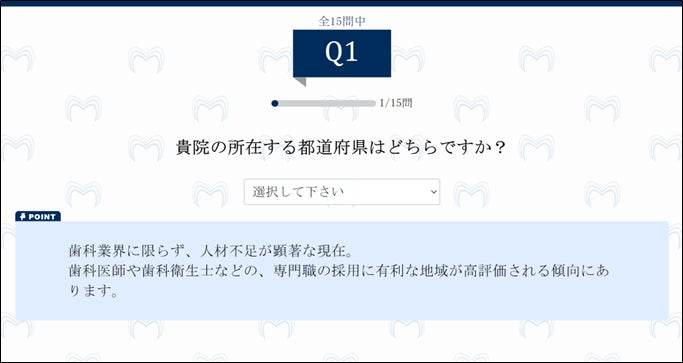 また、社会課題・業界課題の解決の一助になりたいという水谷代表の思いに基づき、個人情報の入力を一切求めない、歯科医院 M&A の啓蒙に主眼を置いたシステムとして開発いたしました。